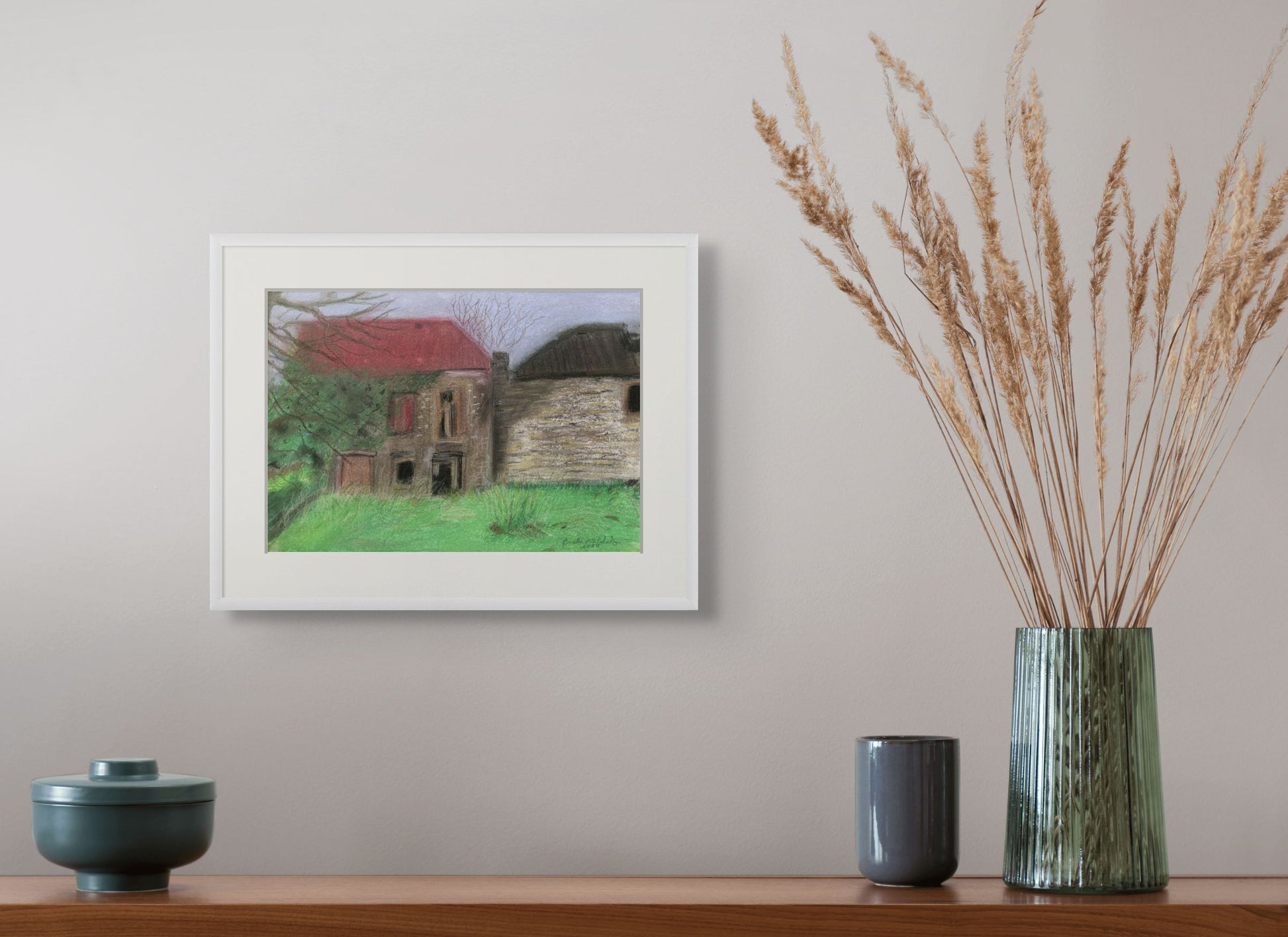 This is a limited edition print of my orginal pastel painting. A4 Framed in a white, wooden, glazed frame.